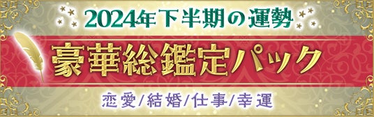 公開された2024年下半期の運勢鑑定では、総合運鑑定、恋愛運鑑定と2種類の鑑定をまとめてご覧いただけるお得なパックもご用意しております。