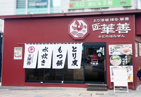 「とり酒場 博多華善」は水炊き・もつ鍋・とり皮と、博多の名物が一挙に味わえる大衆居酒屋です。「水たき料亭 博多華味鳥」の姉妹店でもあり、ブランド鶏 “華味鳥” を気軽に堪能でき、宴会や飲み会におすすめの飲み放題付きコースもご用意しております!