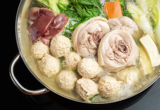 福岡博多の伝統料理のひとつ「水炊き」。自社ブランド鶏 “華味鳥” を使用し、スープ、ぽん酢、薬味に至るまで全てにこだわり抜いた逸品です。