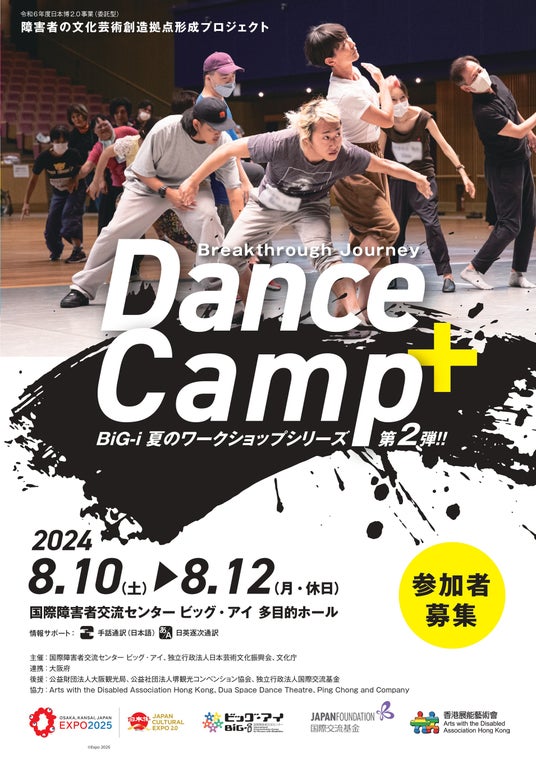 2024年8月10日から8月12日の3日間、国際障害者交流センター ビッグ・アイ(大阪府堺市)で、令和6年度日本博2.0事業(委託型)障害者の文化芸術創造拠点形成プロジェクト『Breakthrough Journey Dance Camp+ 』を開催することをお知らせいたします。