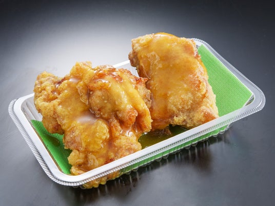揚げたて熱々の大きな唐揚げに、食材をふんだんに使用したおぐら特製ソースをたっぷりとからめました。