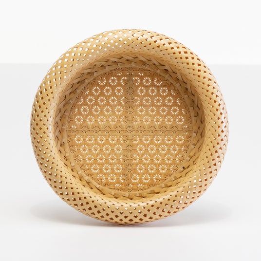 優美でこまやかな編み模様インテリアとしてお部屋に飾っても違和感のない、上品で精緻なつくりです。中に受け皿を入れて、花入れとしてもお使いいただけます。年数を経るごとに徐々にあめ色に変わってくのも楽しみのひとつ。