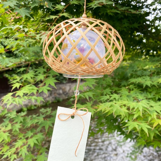 竹とガラスの涼やかな風鈴風通しの良い場所に吊るして、涼やかな風と音色をお愉しみいただけます。