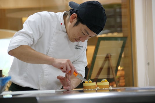 シェフパティシエ:的場 勇志(まとば ゆうじ)atelier京ばあむ内「京ばあむLab.」で販売する抹茶の特性を生かした生菓子のほか、「京ばあむCafe」のデザートプレートなどの開発を担当。
