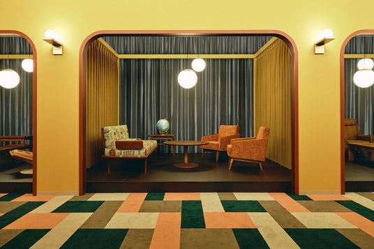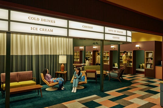 コンセプトは「古き良き」を意味する「OLDIES GOODIES」。館内のデザインは、世界初のディズニーランドが誕生した1955年頃のアメリカの世界観をモチーフにしています。ロビーや客室、パブリックスペースなどは、落ち着きのある色を大胆に組み合わせた色遣いが特徴です。1950年代前後にアメリカで使われていたビンテージ品のテーブルや椅子、本やおもちゃなどもあり、当時の世界観を感じられます。また、館内では当時のアメリカで聞かれていた音楽が流れ、朝はカントリー、夜はジャズやロックンロールなど、時間帯によって異なるジャンルのBGMを楽しめます。テーマパークの1つのエリアにいるかのように、テーマパークを出た後も余韻と非日常的な世界観に浸りながら滞在できます。