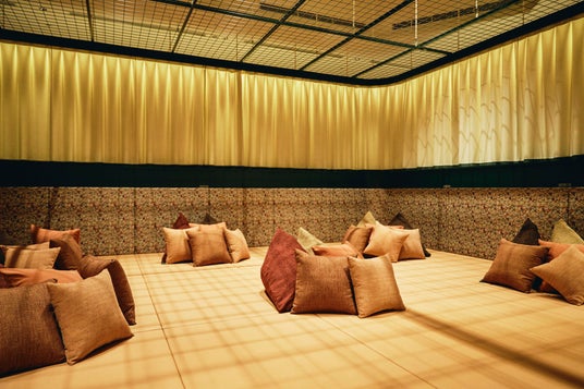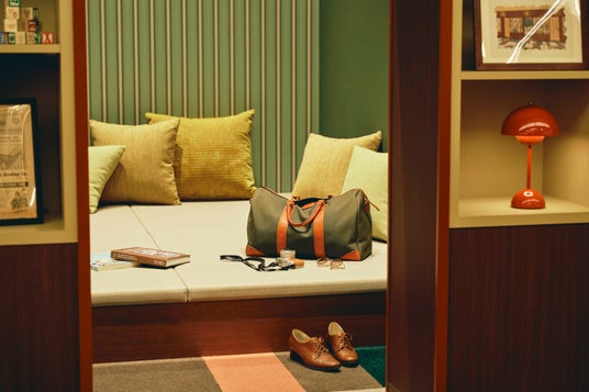 1955 東京ベイの中でも一押しの場所が、宿泊者の方はいつでも(*)自由に過ごせるパブリックスペース「2nd Room」です。1955年頃のアメリカで流行していたミッドセンチュリーデザインのテーブルや椅子が並ぶスペースや、靴を脱いで過ごせるリラックススペース、カーテンを引いて半個室として使えるスペースなどがあり、好みの場所でくつろげます。家族や友人と翌日の作戦会議をしたり、早朝に到着した際にひと休みして出発前の身支度を整えたり、使い方も自由自在です。