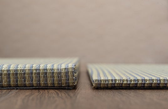 1.5cmタイプは、昨今普及しているロボット掃除機に対応した薄型となっており、一般的なロボット掃除機が畳の段差を乗り越えられる厚みに設計しています。もう一方の2.5cmタイプは厚みがあるのでクッション性が高く、足音などの防音対策としての使用のほか、お子様がいるご家庭ではジョイントマット代わりとしてご活用いただけます。