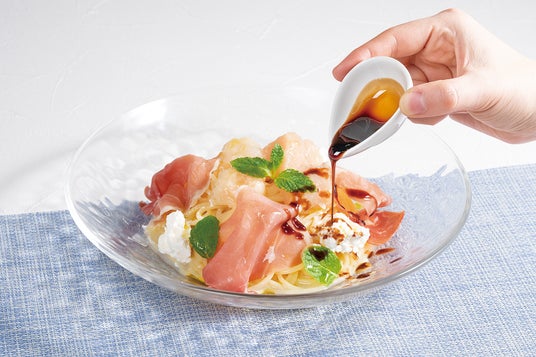 ◆白桃と生ハムの冷製パスタ ~バルサミコソース添え~ 1,650円(税込)~