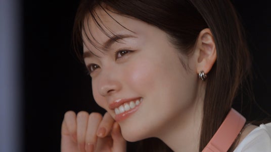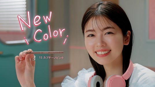 30秒Ver.のラストカットでは、小芝さんが素敵な笑顔でクリーミータッチライナーの新色「15 カプチーノピンク」を紹介!