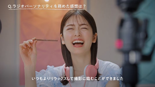 今回のCMは、キャンメイクのアイライナーの中でいちばんの人気商品※「クリーミータッチライナー」です!みなさんに愛されている「クリーミータッチライナー」の魅力を、ラジオのお便り風にご紹介させていただきました!以前ドラマでラジオパーソナリティの役を演じさせていただいた事があったので、いつもよりリラックスして撮影に臨むことができました。