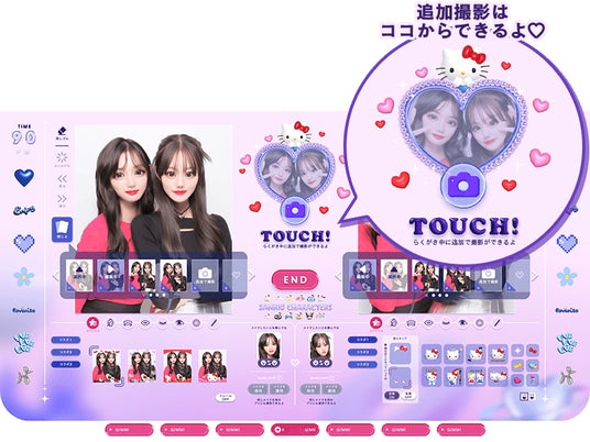 筐体は、撮影・らくがき・シール印刷を1つの空間で完結できる新設計を採用。従来機と異なりブースを移動する必要がないため、自分たちだけの専用空間で、ワイワイした撮影のノリをそのままに、らくがき、シール印刷まで楽しい気持ちが途切れることなく過ごせます。また、新機能「追加撮影」により、らくがき中にも撮影可能。通常プレイで最大19枚まで撮影することができます(※)。ユーザーの「納得するまで撮りたい!」「いろんなポーズで撮りたい!」という気持ちを叶えます。