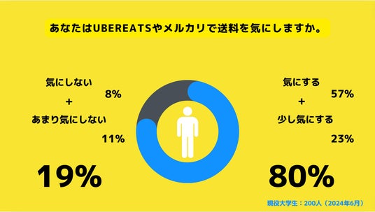 また、UberEatsやメルカリを利用したときに生じる手数料(送料)を気にするかについて調査したところ、大学生の80%が「気にする」と回答しました。