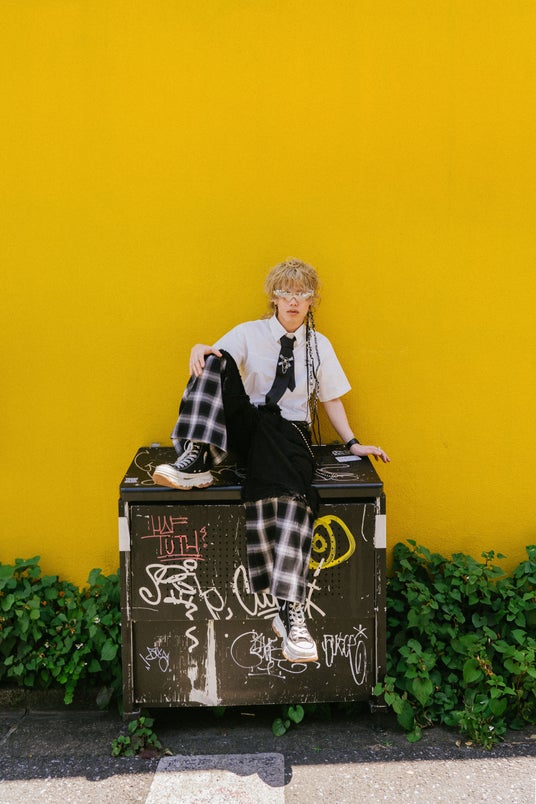 Y2Kのようなファッションが映えるビジュアルで、着こなしもカッコいい。