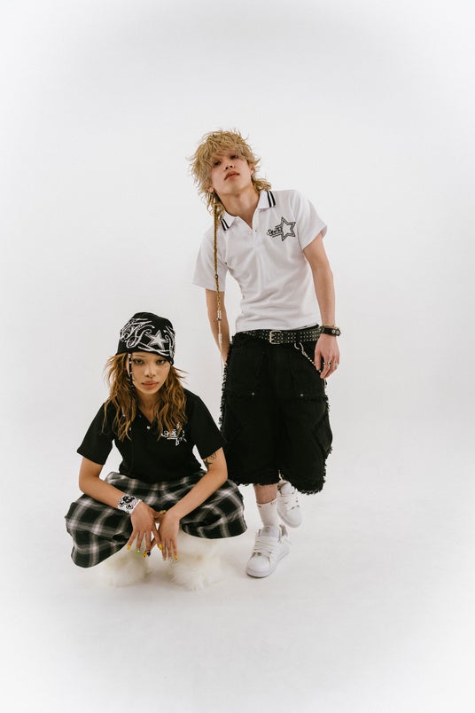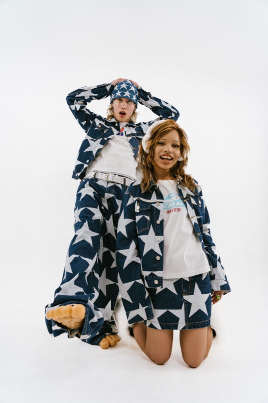 子供服から着想を得たグラフィックTシャツを9 種類やリバーシブルのニットビーニーや、メッシュ切り替えのT シャツ、スパンコールでグラフィックを表現したポロシャツなど、様々な技法で星を表現したアイテムがラインナップされる。