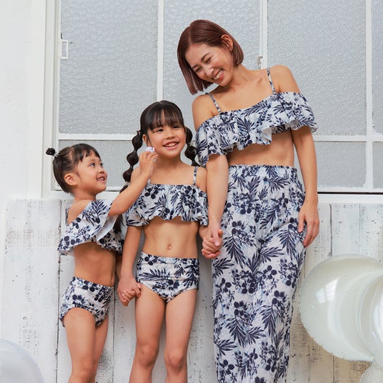 お揃いプリントやデザインの水着で、ファミリーやカップルのリンクコーディネートが楽しめます。