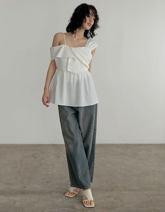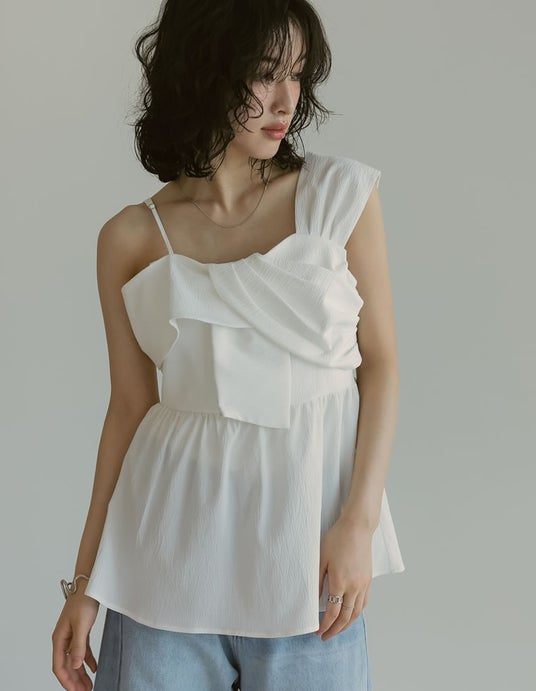 マルチなアレンジで、大人の肌見せを叶えるリボンデザインオフショルトップス。