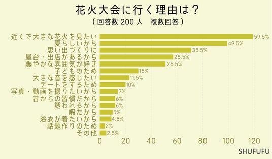 男女200人に「花火大会」に関するアンケート調査を行った所、