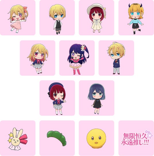 コラボイベントでは撮影フレーム、スタンプ、シールデザイン、BGMが【推しの子】仕様に。アイやアクア、ルビーたちとの撮影が楽しめます。
