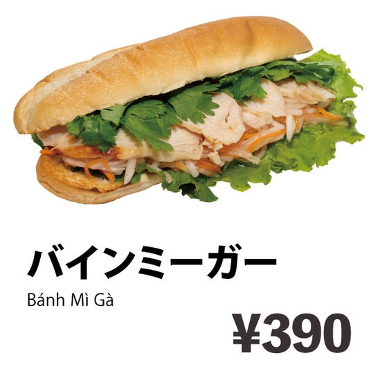 去年の夏にご好評いただいたバインミーガーが再登場!ナンプラーで漬けた鶏胸肉、たっぷりのパクチー、そしてシャキシャキのなますが絶妙に組み合わさった、ベトナム風サンドイッチです。一口食べれば、そのクセになる味わいに虜になること間違いなし!