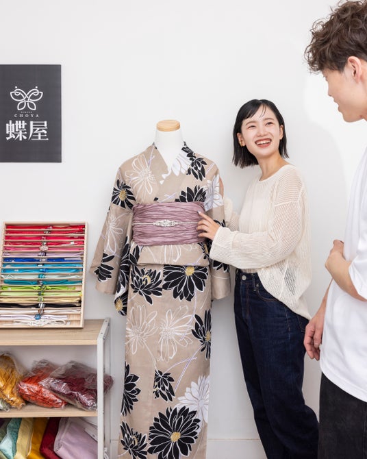 着物専門店スタッフが在中しているので恋人とのシミラールックや友達との双子コーデもご提案。