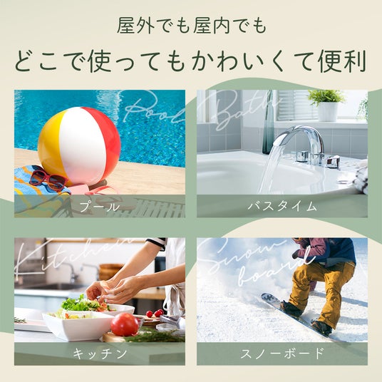 アウトドア、マリンレジャー、お風呂時間など様々なシーンで活躍してくれます。