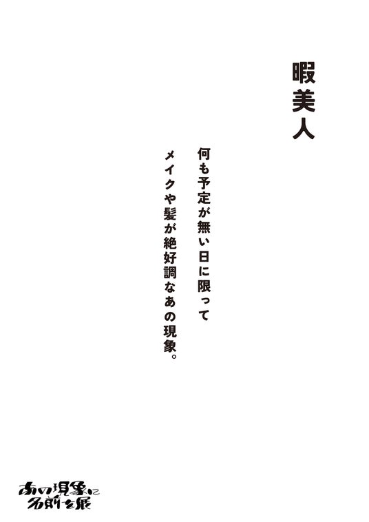 今回は同シリーズ最新作として『あの現象に名前を展DX』を開催します。前回同様、私たちが共通認識をしている名前のない現象【あの現象】にクスッと笑える名前をつけ、可愛いイラストで表現しました。