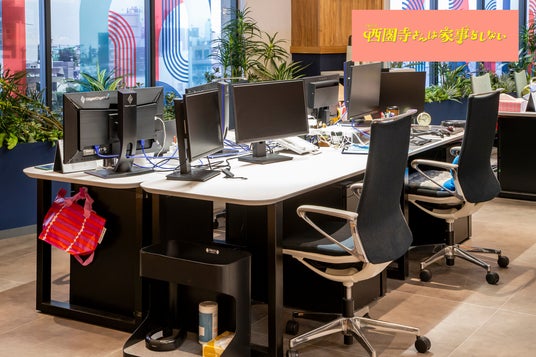 主人公・西園寺一妃、楠見俊直が勤めるアプリ制作会社であるレスQ社オフィスの、エンジニアが使用する個人デスクとして当社のプロダクトを導入いただきました。
