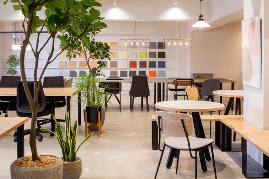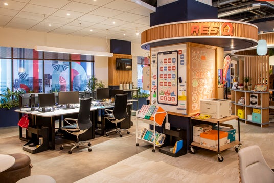 ドラマの舞台となるオフィスは、渋谷にあるオフィスビルの一室という設定。「大人POP」をテーマとして、木目をアクセントにした内装にくすみブルーやコーラルカラー等が取り入れられています。