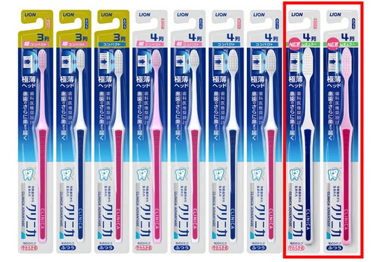 そこでこの度、より多くの皆様に、『クリニカアドバンテージ ハブラシ』で予防歯科を実践いただくべく、市場販売個数で約3割を占めるレギュラーサイズのヘッド(※1)を好む方々に向けて「4列レギュラー」を追加新発売いたします。