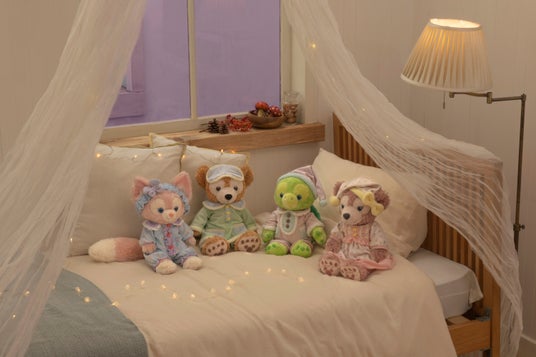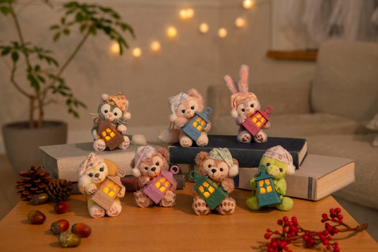 ぬいぐるみコスチュームとして、秋らしいデザインのパジャマが登場します。ダッフィー&フレンズに着せてあげれば、ダッフィーたちに癒されながら秋の夜長をお楽しみいただけます。ダッフィー&フレンズ7人全員のぬいぐるみチャームは、ランタンに光を灯すことができ、小さなランタンを抱えた姿がとってもチャーミングです。そのほか、ぎゅっと抱きしめたくなるようなオル・メルのだきまくらや、ダッフィー&フレンズが眠っている様子が描かれたピローケースなど、おうちでゆったりとした時間を過ごすのにぴったりなグッズを販売します。