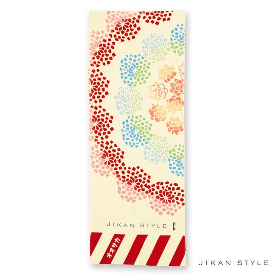関西店舗初出店ということで、おめでたさをそのままに、花輪の柄をデザインしました。飾るとその場が明るくなる手ぬぐいです。是非、お家のお祝い事でも飾ってみて下さい。
