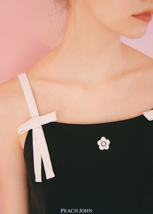 太めのストラップから繋がるリボンのアクセントや、モノトーンの配色がMARY QUANTらしいクラシカルな印象をプラスします。