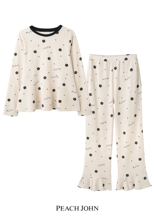 デイジーと“MARY QUANT”のオリジナル刺しゅう、そしてドットの総柄がキャッチーなルームウェア。