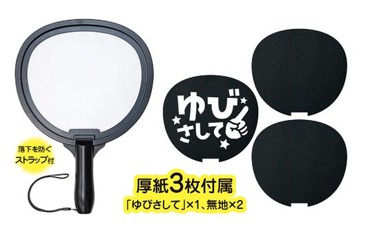 セット内容には「ゆびさして」の文字が切り抜かれた厚紙(1枚)のほか、無地の厚紙(2枚)も付属しており、切り絵のように自由にカットして文字やイラストを入れることができます。