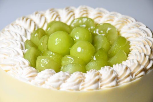 ケーキの周りはホワイトチョコレートを薄くあしらうシンプルな装いとすることで、トップのシャインマスカットと生クリームの華やかさをひきたてるような構成としました。爽やかなシャインマスカットを引き立てながら、全体の味わいに優しい甘さを加えます。