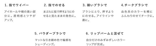 肌に溶け込む絶妙な発色とつややかな質感でメイクにトレンド感を演出いたします。
