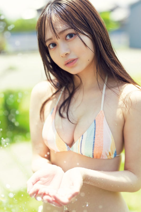 撮影では夏らしい爽やかなワンピースに身を包み、猛暑のなか下着姿へとなっていく様子が展開される。「全然慣れない」というグラビア撮影だが、等身大のかわいらしい笑顔も見せ、ノスタルジックな雰囲気を感じられる仕上がりとなっている。