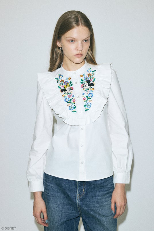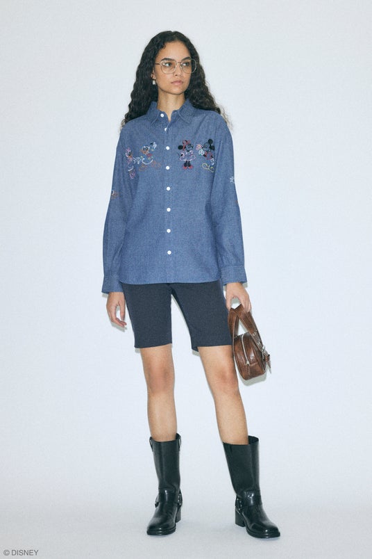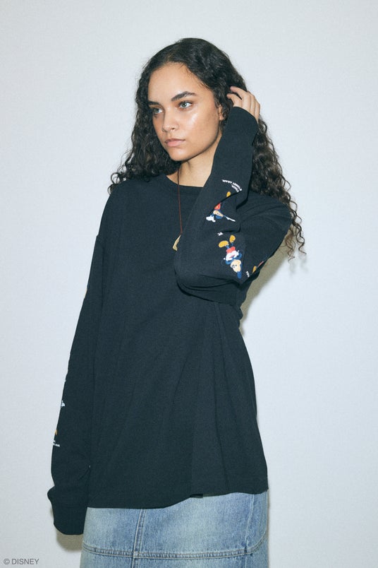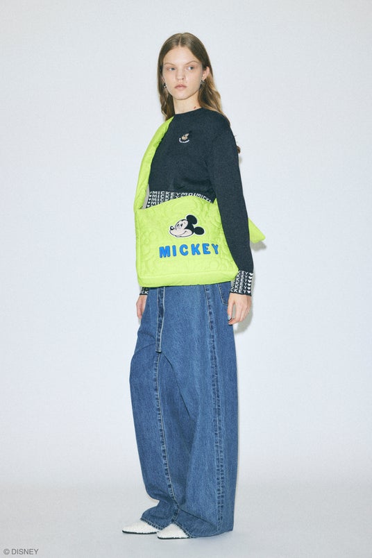 スタンダードキャラクターでは、「I (ハート) You Lots」の発泡プリント文字とMICKEY MOUSE & MINNIE MOUSEが手刺繍風で表現され、アイコニックでカラフルな5色展開のユニセックスサイズクルースウェットを始め、デコレーションペンで描いた様に少しぷっくりとした立体感のある刺繍で細部にまで繊細に表現し、前後・両袖にたくさんのMICKEY & FRIENDSがデザインされたダンガリーシャツや花柄にMICKEY MOUSE & MINNIE MOUSEが溶け込んだカジュアルなフリルシャツ、MICKEY MOUSE総柄のワンピースやクラシックなデザインと袖配色が効いたロングスリーブ、キルティングショルダーバッグやMICKEY MOUSEのお顔のチョーカーなど、Disney SERIES CREATED by MOUSSYらしくひねりを効かせ、古着屋に並んでいそうで、でもどこにもない「あればいいな」を形にしたラインアップとなっています。