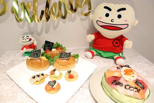 推し活パーティイメージ画像(コッペパン、クラッカー、お寿司ケーキの上にデコレーション)