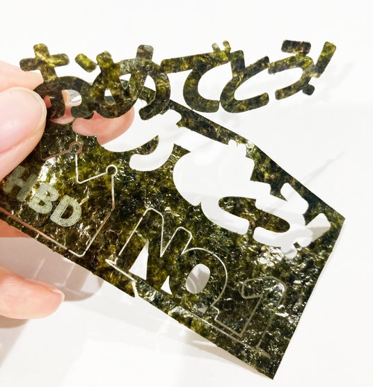 本商品シリーズは、レーザーカットを用いて、海苔にデザインを切り抜いています。