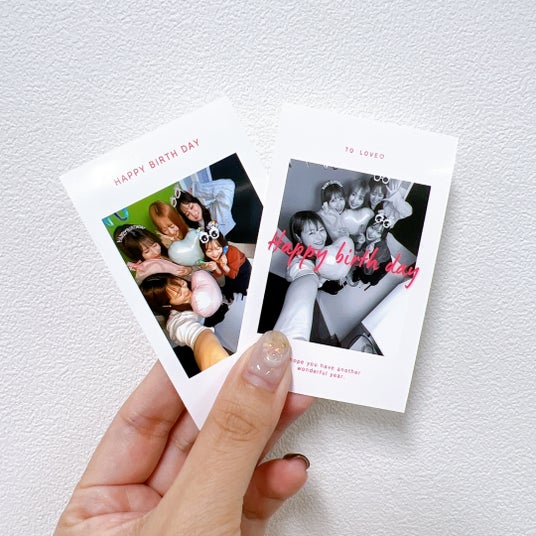 友達や家族、恋人など大切な人と過ごした時間を切り取った写真を1枚~複数枚自由にレイアウトできる『PURI&』。思い出のつまった写真を複数枚組み合わせたり、お気に入りの1枚をチェキ風に印刷したり、様々な形で思い出を残していただけます。また、文字入れができるデザインもあり、流行の推し活での活用も。スマホケースに挟むのにぴったりのサイズ感で印刷されるため、アルバムに貼るだけではなく、ケースの裏に挟んで持ち歩くのもおすすめです。