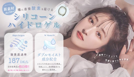 瞳に酸素を直接届けられる「シリコーンハイドロゲル素材」のレンズで、酸素透過率(DK/L値)※1は187DK/Lと当社従来品の約15倍を実現。