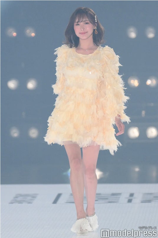 モデルの今井アンジェリカは、ツインテールに鮮やかな黄色のチュールワンピ姿で、笑顔を弾けさせた。