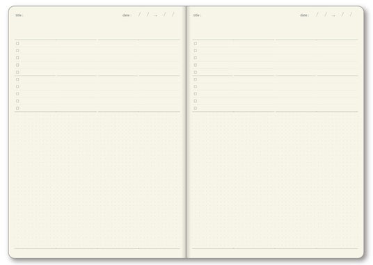 日付なしの1日1ページタイプで、イラストやシールでデコレーションしやすいドット方眼罫の手帳。