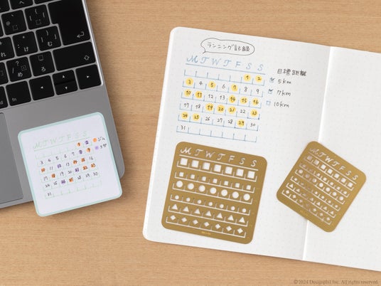 なぞるだけで簡単にカレンダーを書くことができるテンプレート。ズレにくい滑り止め加工つき。