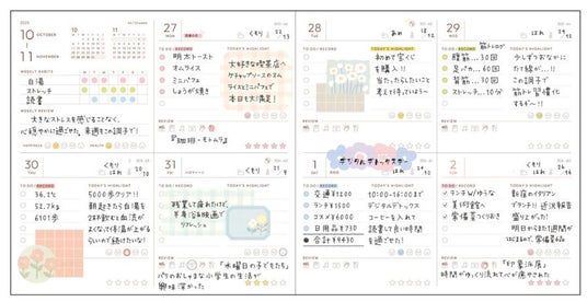 月間ページの後にライフログページとしても使いやすい方眼のメモが165ページついた大ボリュームの手帳。ロフト限定柄の「マノワール」「アニマル」「干支」が登場。