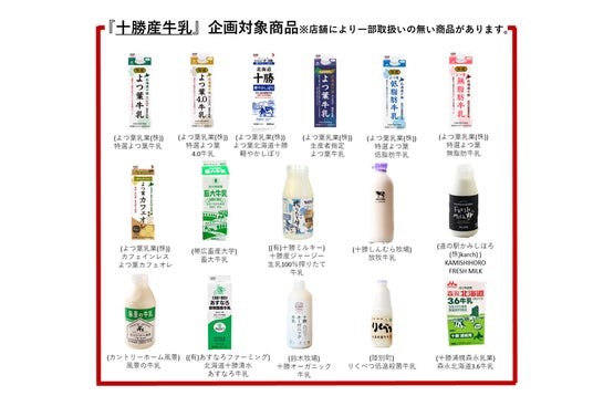 ↑対象牛乳(※店舗により一部取扱いのない牛乳があります。)