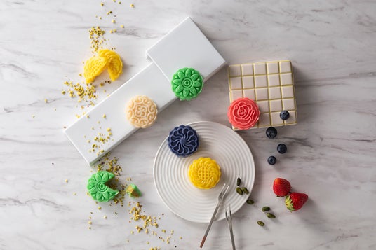 プレーン、ストロベリー、ブルーベリー、パッションフルーツ、ピスタチオ、それぞれのフレーバーで楽しむ濃厚なチーズケーキを、上品な甘さの白餡をベースにした生地で包み込んだ月餅は新感覚の味わい。見た目も可愛らしく贈り物にもおすすめです。
