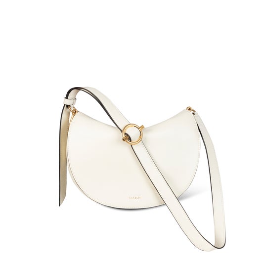 ケイトバッグは、ゴールドのフレームが美しい丸みを引き立てるユニークな半月形のデザインが特徴でエレガントさが一層、際立ちます。カスタムメイドのバックルによりストラップ位置が自由に調整することができ、スタイルと快適さの両方を実現、そして見た目の美しさだけでなく、手に持った際に心地の良さも追求しています。