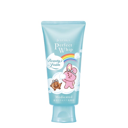 「ミクロ美容泡で肌も心も明るくススメ!」をテーマに、“泡”とキメポーズを披露する「BT21」のキャラクターたちは、ヘアバンドもつけて、SENKAのミクロ美容泡での洗顔タイムに向け準備もばっちりです。それぞれのパッケージでは、各キャラクターの個性も垣間見えるような、センカ定番の青色「センカ パーフェクトホイップ」には泡に触れてうっとり笑顔を浮かべるKOYAとRJ、ピンク色「センカ パーフェクトホイップ コラーゲンin」にはふわふわ泡を楽しむにっこり笑顔のMANGとCHIMMY、白色「センカ パーフェクトホイップ ホワイトクレイ」には泡を見せてマジメな表情を浮かべるTATAとVAN、そして薄緑色「洗顔専科 パーフェクトホイップ アクネケア」には泡を手に思わず飛び跳ねそうなSHOOKYとCOOKYが描かれています。